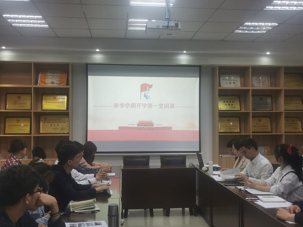 2021年4月28日19:00,材料学院团委在X2128开展了2021年度春季学期第一堂团课。参与本次团课的有材料学院团委书记黄德明、团建中心指导老师许欢、本科全体团支部书记和新发展团员,本次团课由黄德明老师主讲。