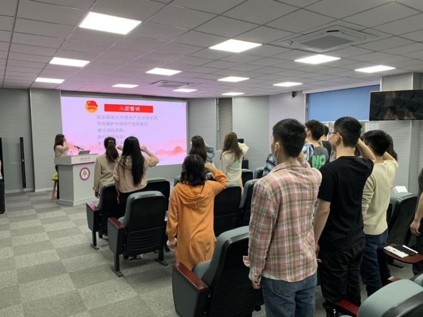 4月30日在九里校区,由材料学院团委副书记、“青年讲师团”严翼飞老师宣布2021年度“青马工程”暨“先锋计划”学生干部培训正式启动,并带领团支书及研究生会成员重温入团誓词。