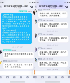 班团例会,2021年5月7日,本科2019级对各班文体组织委员、生活权益委员进行安全工作部署,要求各班将安全工作落到实处,提高认识,加强班级教育,关注异常情况并及时反馈和干预。2021年5月10日,本科2019级召集各班班长、团支书开展班团干部例会,再次强调安全无小事,要求各班积极配合生活权益委员开展安全教育工作,各位同学、各个寝室相互监督提醒。