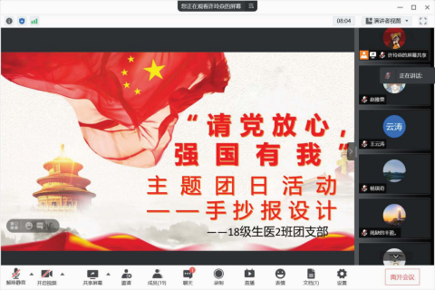 为庆祝中国共产党成立100周年华诞,贯彻学习习近平总书记“七一”重要讲话精神,2021919日至22日,生医2018-02团支部顺利开展了“我心寄明月,明月照中华”团日活动。
