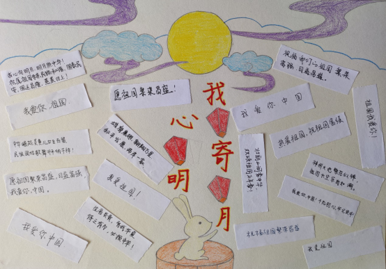 最后,团支书许玲焱开始卡片粘贴工作,每一张卡片都诉说着对祖国的无限热爱,牢牢地粘贴在手抄报上,经过一夜的成型, “我心寄明月,明月照中华”手抄报设计正式完成。