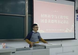 团日活动在高亢嘹亮的共青团歌中拉开帷幕。首先,学院团委书记黄德明老师为本次活动致辞。黄老师围绕团日活动主题,结合党史和社会热点,叮嘱同学们要听党话、感党恩、跟党走,把个人奋斗与成长融入到民族复兴的伟业中去。随后,许欢老师在讲话中鼓励同学们坚定理想信念,勇担时代重任,并对本次活动的组织开展工作予以肯定和赞赏。