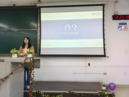 最后,学生会指导老师梁喻嘉的精彩致辞结束了本次的大会。她首先介绍了学院学生会改革的基本情况以及取得的优秀成绩;并以此激励新成员能够在学生会丰富知识,提升能力,收获友情;最后,她强调了学习的重要性,希望大家能合理安排自己的学习,工作和生活。