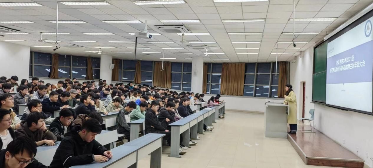 为扎实推进2025届学生升学、就业工作,帮助2025届学生全面了解就业、考研形势,明确发展目标,完善个人生涯规划。材料学院本科2021级于3月19日开展“冲刺2025材子启航计划”(四)——毕业去向基础调研分析,辅导员许欢、张若男及2021级全体本科生参加。