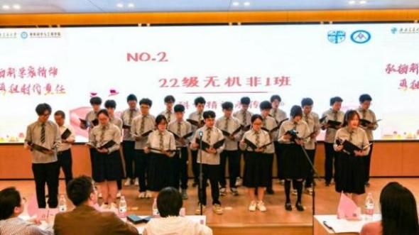 班团同心共展风采,精神内涵深入人心。本次比赛共有16个班级,400百多名同学通过视频录制参与初赛选拔。部分班级原创诗歌,歌颂科学家们的报国史诗,大家精心编排,气宇轩昂,生动展现伟大科学家精神内涵。经过学院认真筛选,最终共有10个班级,239名同学进入决赛。