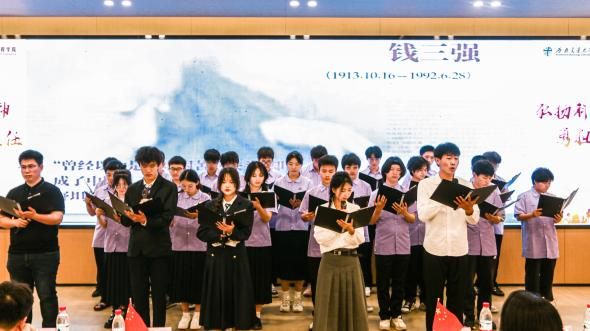 10个班级依次上台,声情并茂,将科学家们的故事娓娓道来。他们讲述了茅以升的风骨,陈能宽的奉献,南仁东的天眼之梦……每位班级都以独特的视角和深刻的理解,表达了对科学家的敬仰和对科学事业的热爱。