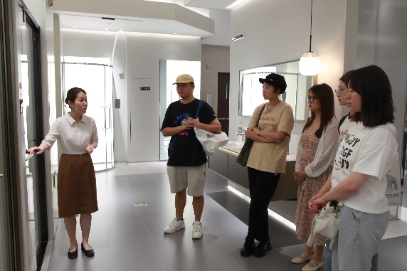 7月19日上午,实践团队到达箭牌家居集团股份有限公司,看望2022届毕业生吴鑫海。企业人力资源部刘宜、邱馨雨,健康与材料技术中心负责人李焕新参与座谈交流。会上,吴鑫海对母校母院专程看望他表示感谢,并分享了他在企业的岗位职责、工作体验、职业发展经验和心得,为在场的学生提供了就业方向和职业发展的参考。李焕新对对吴鑫海的工作予以了高度评价和赞赏,并向师生介绍了智能制造背后的科技支撑和行业发展趋势。刘宜介绍了应届毕业生进入企业后的发展路径等。会后,实践团队参观了箭牌家居的系列产品。