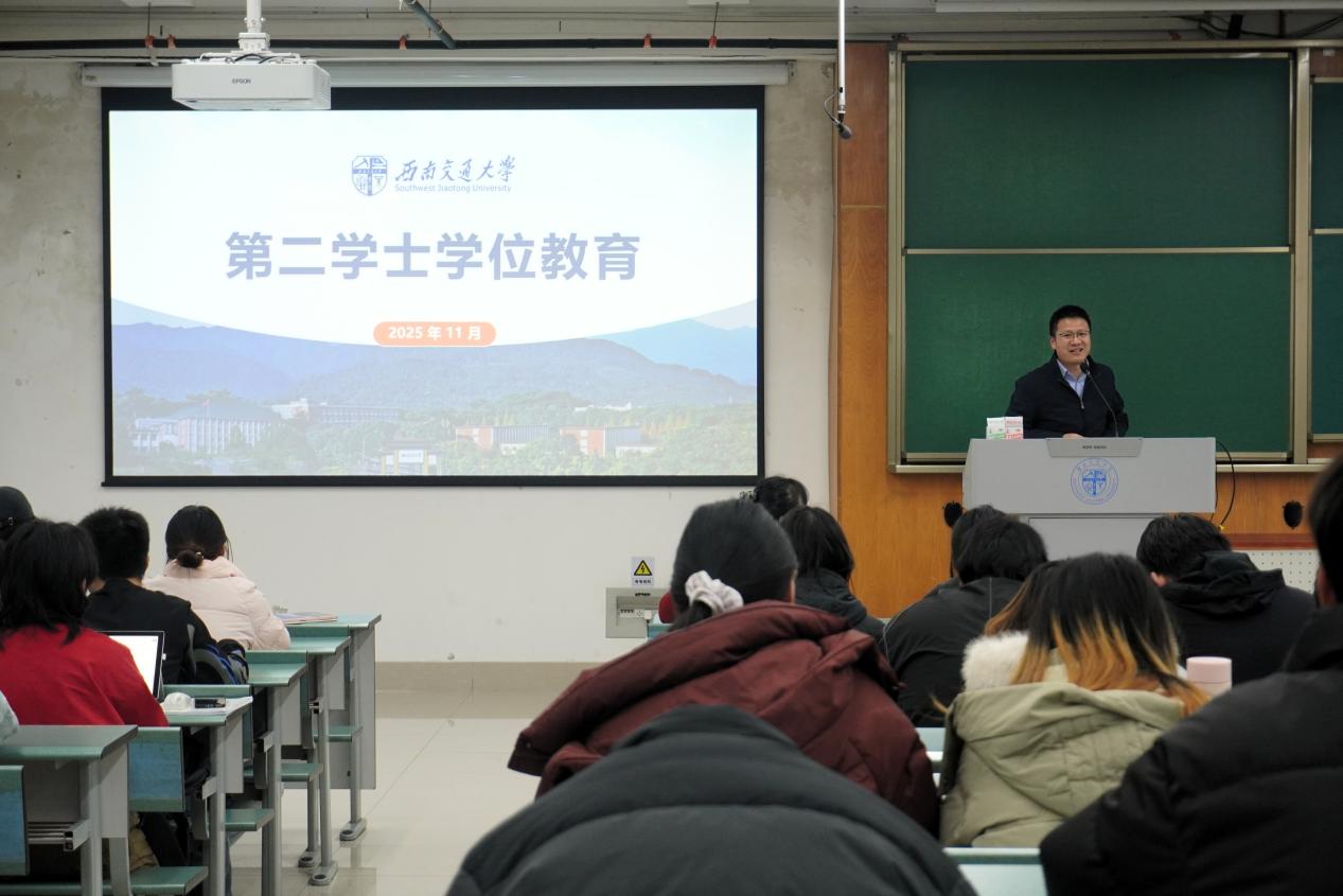 随后,陈洪章为同学们详细解读了学校第二学士学位政策。他系统介绍了该政策的背景与育人价值,指出其能够有效拓宽学生发展路径,培养具有跨学科背景的复合型人才。陈主任还就2026年的招生专业、报考条件以及峨眉校区为第二学士学位学生提供的学习资源、生活配套与就业服务等进行了说明,鼓励同学们根据自身发展需求积极关注。