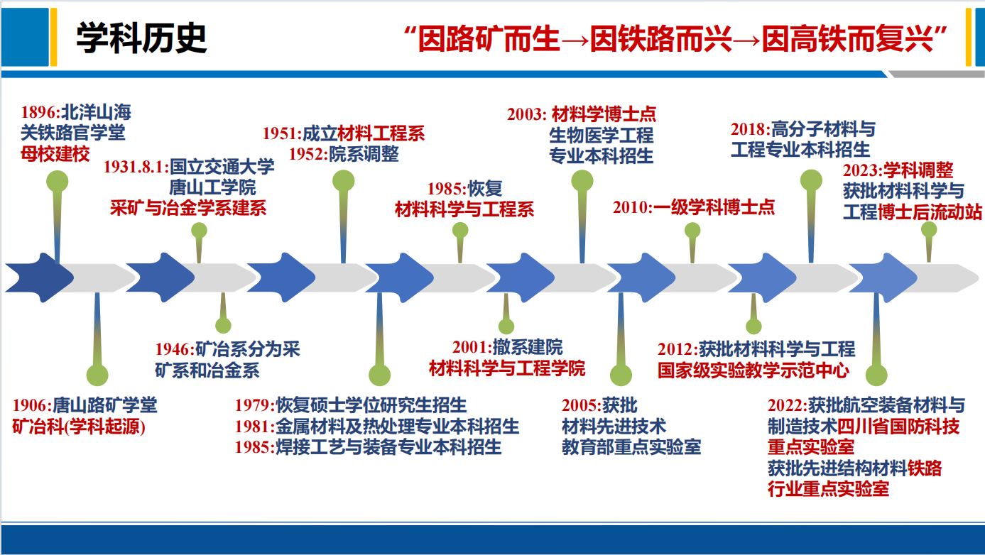 西南交通大学1896年创建于山海关,始称“北洋铁路官学堂”(Imperial Chinese Railway College),是中国土木工程、矿冶工程、交通工程高等教育的发祥地。