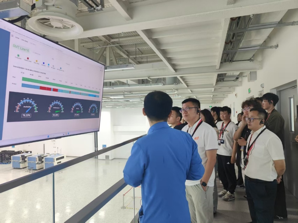 在西门子公司代表的引导下,师生党员深入现代化生产一线。工厂负责人详细介绍了西门子在工业自动化、数字化双胞胎技术及绿色制造领域的核心优势,重点阐释了“数字化工厂”(Digital Factory)的运作理念——通过整合产品全生命周期数据,实现生产全流程的仿真优化与闭环管理。参观过程中,高度自动化的生产线、精准的工业视觉监控系统(不良率低至百万分之十)以及高效的物料运输体系,生动展现了数字化、智能化对现代制造业“质效革命”的重塑作用。师生们近距离观摩智能设备运行状态,直观理解“机主人辅”生产模式,深刻体会到工业4.0时代对材料性能、工艺精度及跨学科融合提出的新要求。