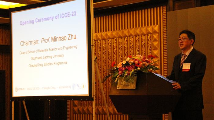 由西南交通大学承办的第23届国际复合材料与纳米工程学术会议(23rd Annual International Conference on Composites or Nano Engineering, ICCE-23)于201571218日在中国成都加州花园酒店成功举行。大会开幕式于713日上午8:45在加州花园酒店金牛厅举行,威廉希尔WilliamHill官方网站院长、材料先进技术教育部重点实验室常务副主任朱旻昊教授主持开幕式,西南交通大学副校长张文桂到会祝贺并致欢迎词。