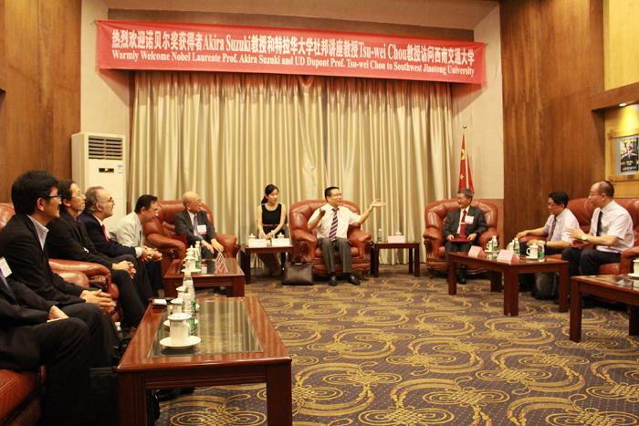 会议期间,20多位专家学者先后到访威廉希尔WilliamHill官方网站,与有关课题组和教授团队进行学术交流,徐飞校长亲切接待了部分专家,并授予诺贝尔化学奖获得者铃木博士和著名复合材料专家邹祖炜博士为威廉希尔WilliamHill官方网站名誉教授。