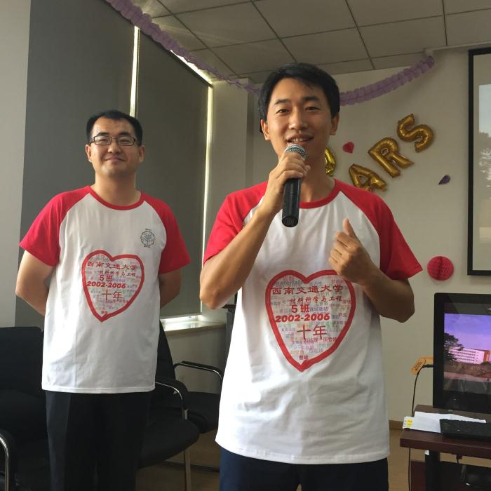 正值教师节之际,9月10日下午,我院2006届材料科学与工程5班学生在九里校区2331会议室举行毕业十周年聚会。学院朱旻昊院长、陈兴莲书记、黄楠教授、冷永祥副院长(原2002-5班班主任)和后勤集团副书记高磊(原我院2002-5班辅导员)应邀出席本次聚会。