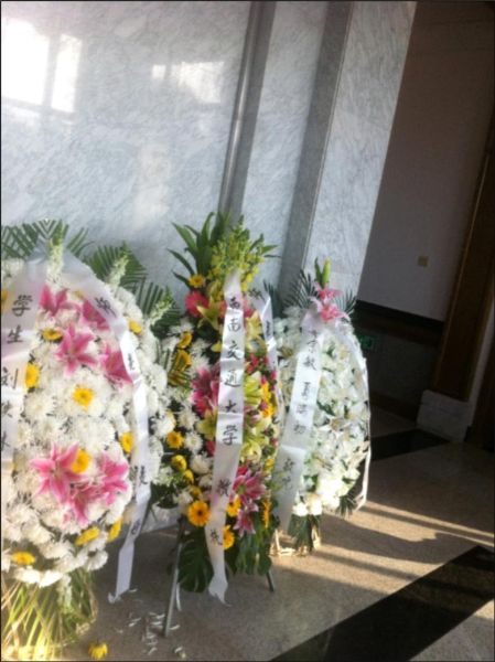 从早上7点多钟开始,就有不少专家学者开始在八宝山殡仪馆东礼堂门口的广场上聚集,等待最后送别师老。吊唁厅门口悬挂的黑色挽联“拓基金,谋宏略,师老风范激扬民族魂”、“研材料,鼎工程,昌绪丹心熔铸强国梦”,概括了师教授辉煌的一生。上午9时,告别正式开始,师老安详地躺在鲜花丛中,身上覆盖着党旗。数千位前来吊唁的社会各界人士及师教授的同事、学生、后辈,排队缓步进入吊唁厅,给师老送上深深的三鞠躬。师教授的爱人和儿子颤抖着双手与前来吊唁的人一一握手致谢。许多人难掩悲痛之情,眼含热泪,伫立在师教授的遗像前久久凝望,不愿离去。