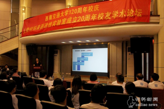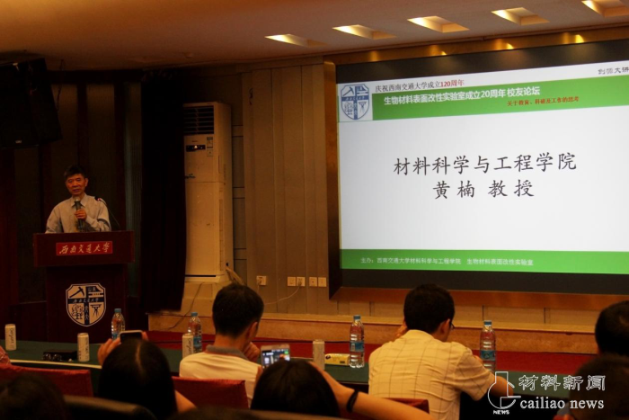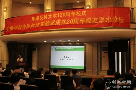 6月18日上午八时半,西南交通大学120周年校庆生物材料表面改性实验室成立20周年校友学术论坛在九里校区镜湖宾馆举行。材料学院党委委员、学工组组长章春军,副院长朱德贵,副院长冷永祥,实验室创始人黄楠教授及校友参与了此次论坛,论坛由杨苹教授主持。