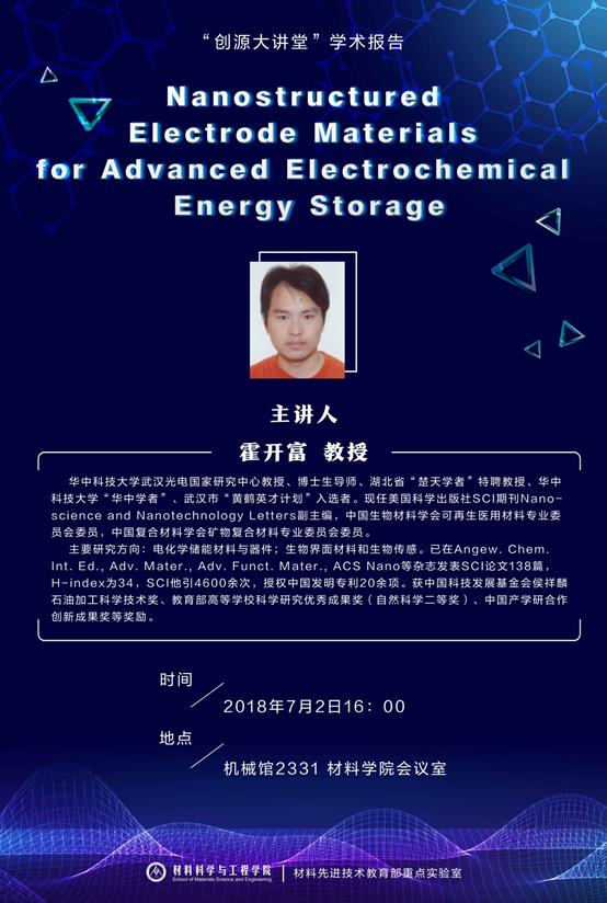 【学术报告】Nanostructured Electrode Materials for Advanced Electrochemical Energy Storage