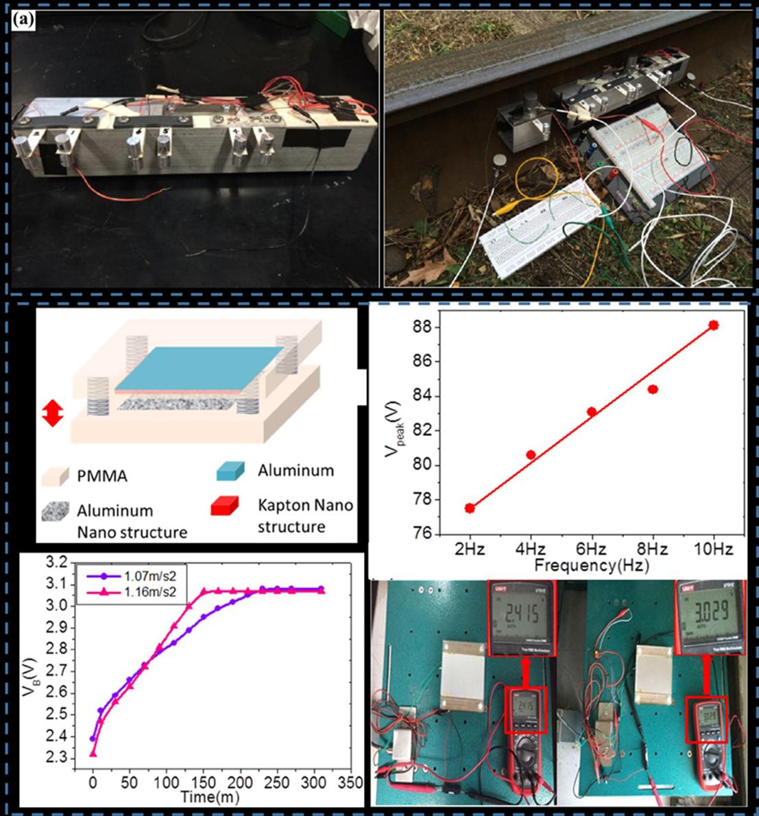 10 利用压电与摩擦电两种不同的方式收集列车轨道的振动能。