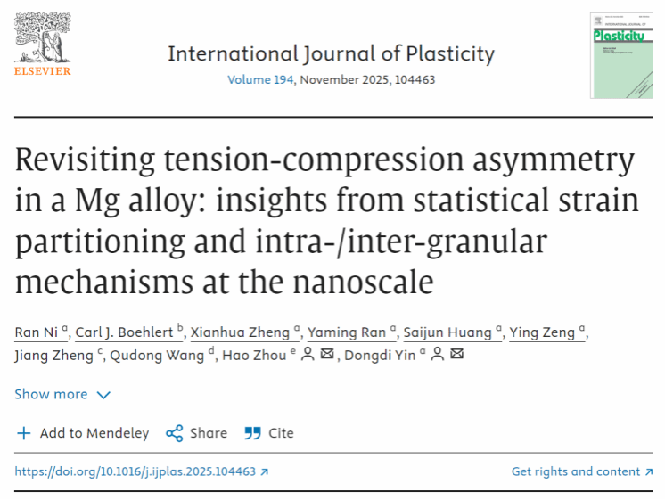 学术专题|学院尹冬弟教授、倪然博士生等在《Int. J. Plast.》发表最新研究成果