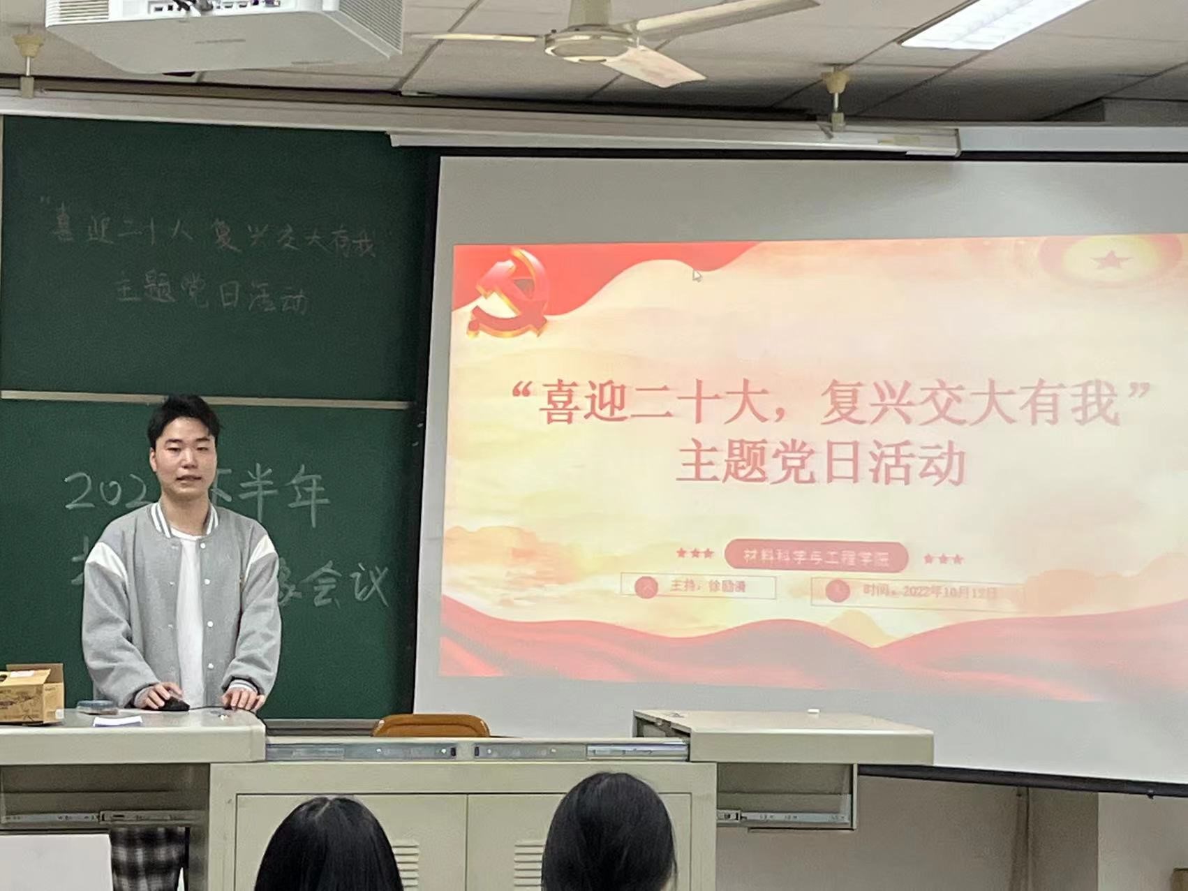 在中国共产党第二十次全国代表大会召开前夕,材料学院各研究生党支部掀起“喜迎二十大,复兴交大有我”学习热潮,以实际行动迎接党的二十大胜利召开。