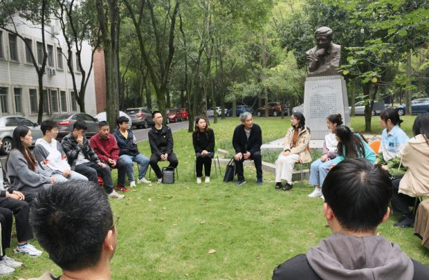 弘扬科学家精神,勇担时代使命。11月8日,在陈能宽雕塑前开展座谈会,特别邀请了校史专家、2021年度“最美交大人”梁锦唐老师主讲。梁老师从他与陈能宽先生一次难得的见面讲起,介绍了陈能宽先生的生平事迹,期间梁老师多次谈及陈能宽先生的家国情怀及无私奉献精神,勉励同学们学习优秀前辈的事迹与精神,成为甘于奉献、热于科研、忠于祖国的新时代交大人。座谈会结束后,大家一同前往院史馆思源厅,展厅记载学院各个时期的发展历程,展示了一代代材料人的奋斗与拼搏,增强新生党员对于学院的归属感与认同感,讲述了杰出校友陈能宽院士等科学家艰苦奋斗、求真学问、爱国爱校的精神,激励同学们坚持追求真理、厚植爱国情怀、增强使命担当,以更加饱满的热情投身于科研报国。