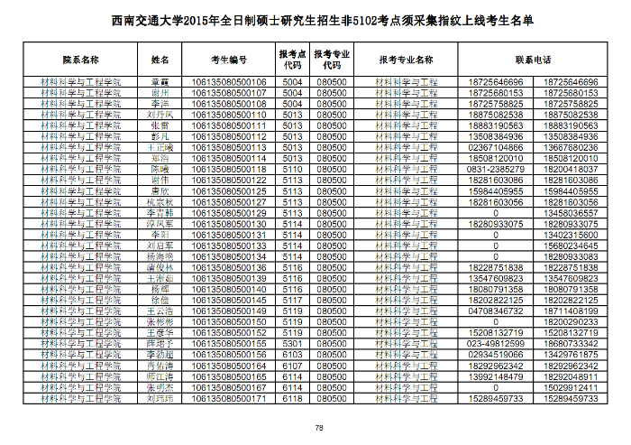 西南交通大学2015年全日制硕士研究生招生非5102考点须采集指纹上线考生...