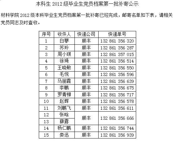 [学院公告]本科生2012级毕业生党员档案第一批补寄公示