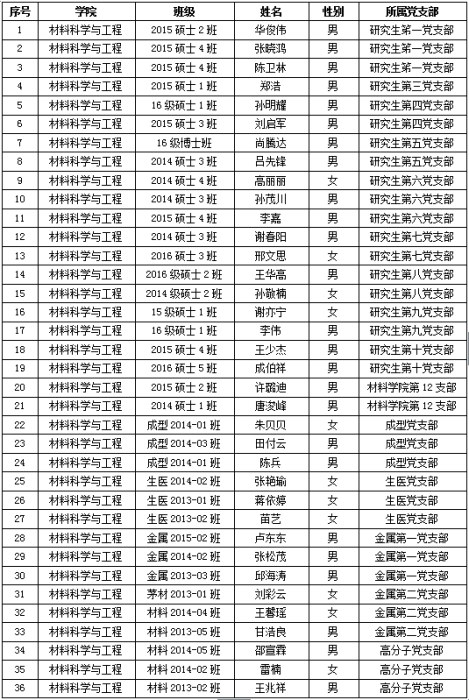 [学院公告]材料学院2016-02期党员发展对象培训名单公示